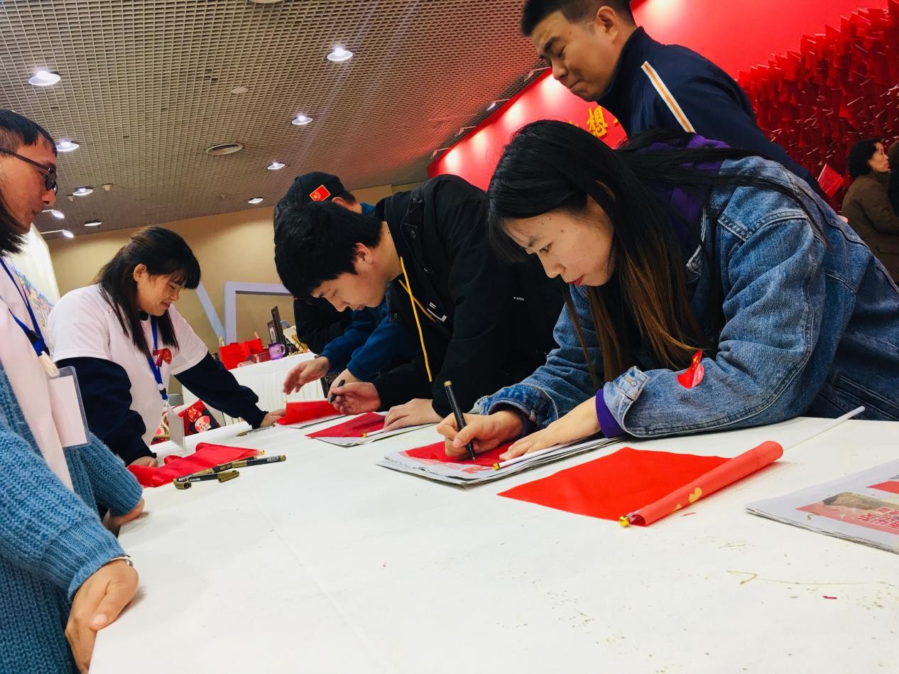 展馆的最后一部分设置了“祖国我想对你说”环节,同志们纷纷在红旗上写下对祖国最诚挚的祝福。