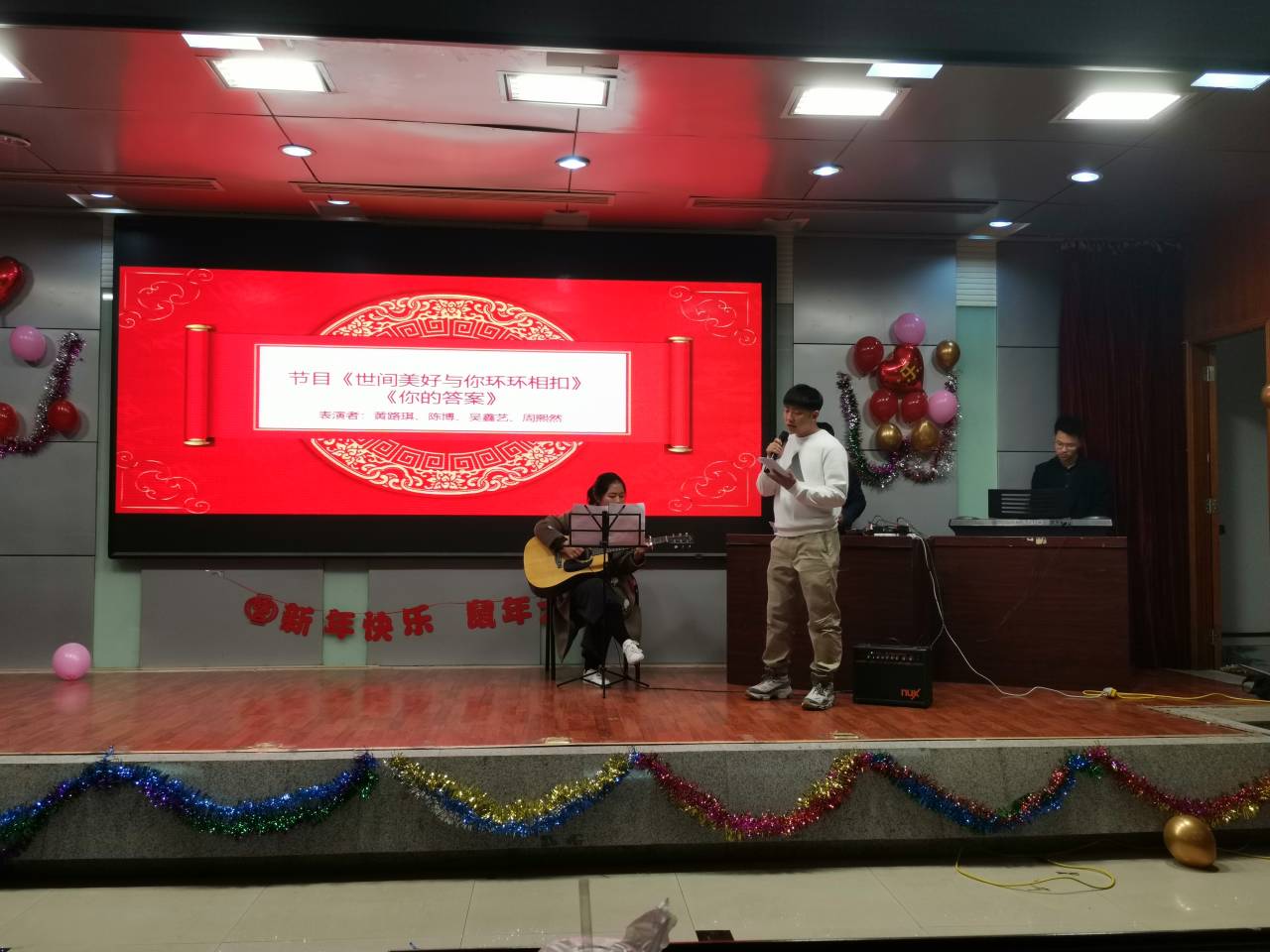 为进一步丰富校园文化生活,缓解同学们备战考试带来的疲劳,提高学生生活情趣和艺术创造力,2019年12月29日晚上7点,raybet在线官网雷竞技raybat竞猜研究生会在图书馆二楼报告厅举办“不忘初心,砥砺前行”元旦晚会,2018级、2019级研究生参加了晚会,辅导员范文静出席并发表新年祝语。