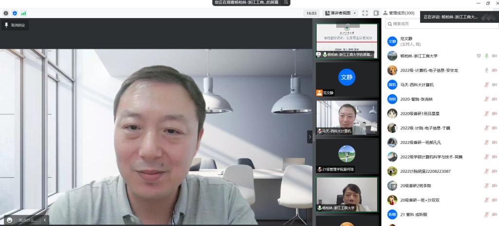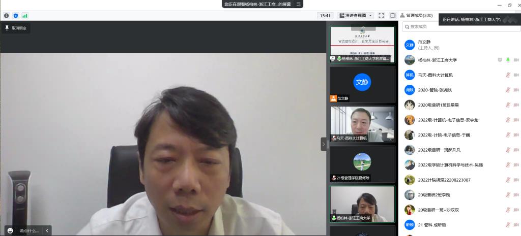 9月20日,浙江工商大学杨柏林教授应邀做客我校“胡杨林大讲堂”,作了题为《智能虚拟设计,让家居生活更美好》的学术报告。报告会由研究生院主办,计算机科学与技术学院承办,副院长马天教授主持,全校300余名研究生及教师聆听了报告。