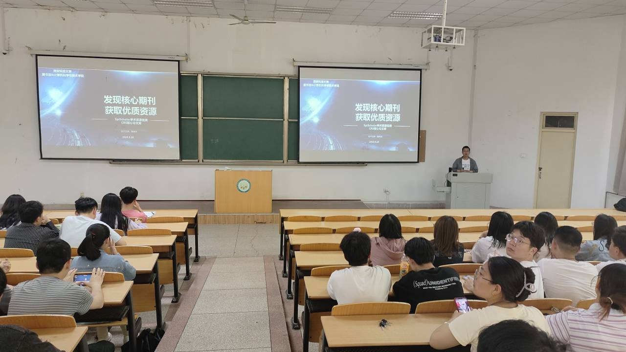 为拓宽文献检索及全文获取渠道,图书馆康虎兵老师应邀于2023年5月19日下午2:30在9号楼101为我院学生作题为《发现核心期刊,获取优质资源》的学术报告。报告会由计算机科学与技术学院承办,学院100余名研究生聆听了报告。