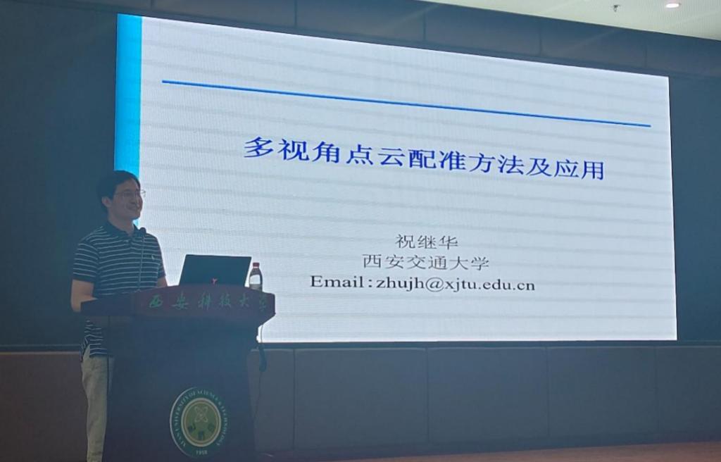 7月13日,西安交通大学软件学院副院长祝继华教授应邀做客我校“胡杨林大讲堂”,做了题为《多视角点云配准方法及应用》的学术报告。报告会由研究生院主办,计算机学院承办,雷竞技raybat竞猜副院长马天主持,全校200余名研究生及教师聆听了报告。
