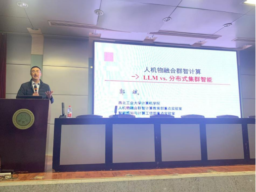 12月9日,西北工业大学郭斌教授应邀做客我校“胡杨林大讲堂”,做了题为“人机物融合群智计算:LLM vs分布式集群智能”的学术报告。报告会由研究生院主办,雷竞技raybat竞猜承办,雷竞技raybat竞猜副院长马天主持,全校300余名研究生及教师聆听了此次报告。