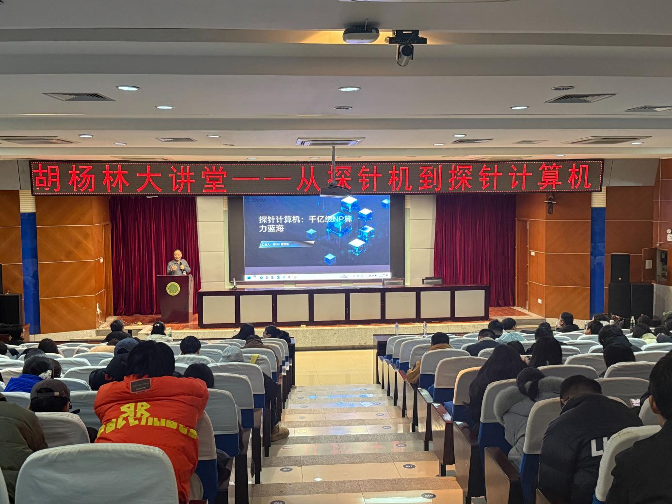 1月9日上午,北京大学许进教授应邀做客我校“胡杨林大讲堂”,做了题为《从探针机到探针计算机》的学术报告。报告会由研究生院主办,雷竞技raybat竞猜承办,雷竞技raybat竞猜院长于振华主持,全校200余名研究生及教师聆听了此次报告。